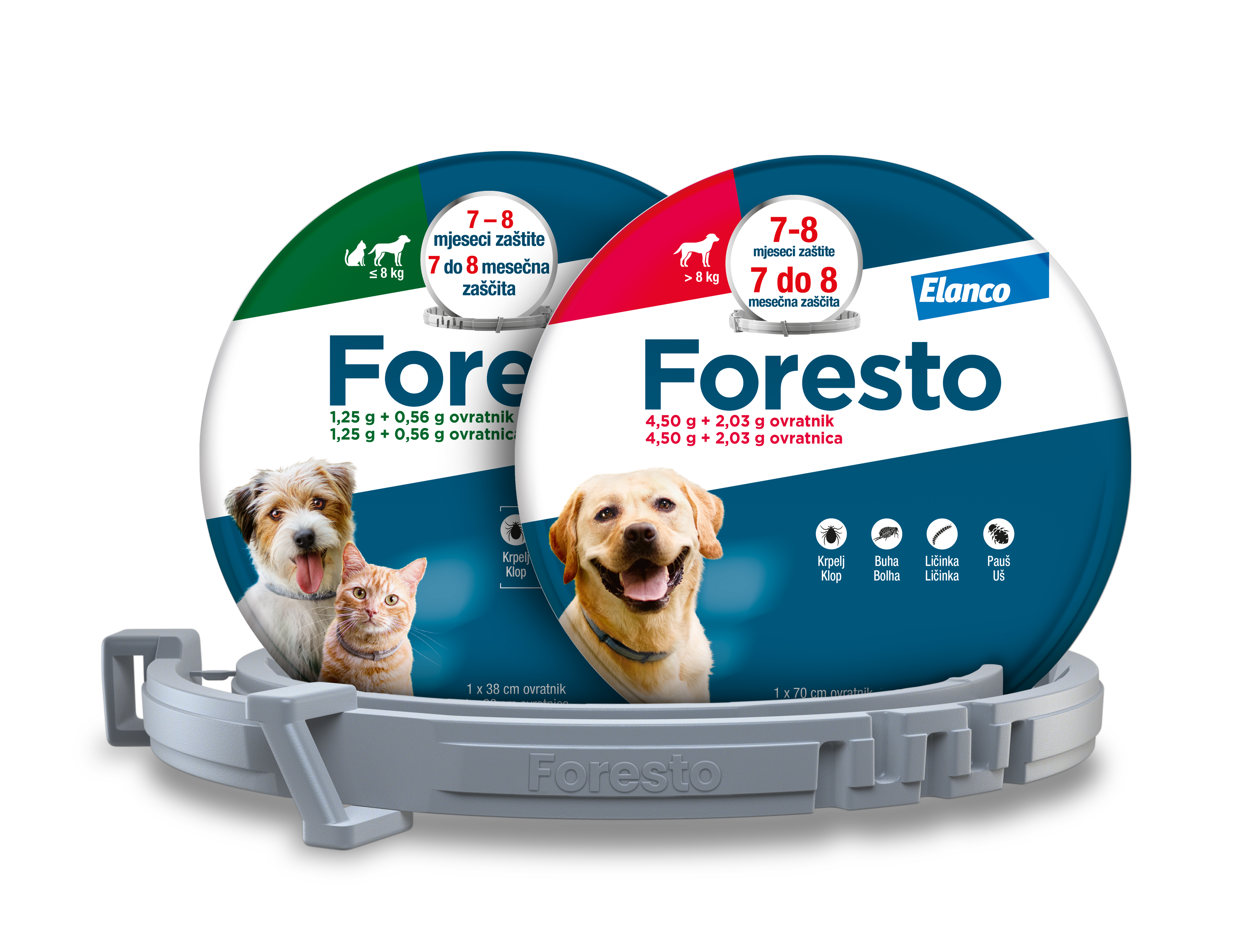 Ovratnik nema mirisa, vodootporan je i učinkovit i protiv buha i protiv krpelja, što ga čini jednostavnim rješenjem po pitanju zaštite vašeg najboljeg prijatelja kroz duži period – zaštitu do osam mjeseci.